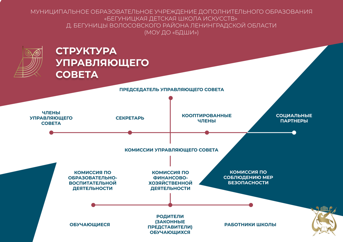 Если ответить согласно Устава БДШИ - Управляющий Совет муниципального образовательного учреждения дополнительного образования «Бегуницкая детская школа искусств» д. Бегуницы Волосовского района Ленинградской области является представительным коллегиальным органом государственно-общественного управления, избираемый на срок от 1 года до 3 лет с применением процедуры выборов, назначения вхождения по должности и кооптации членов УС (п. 5.16. Устава МОУ ДО «БДШИ»).